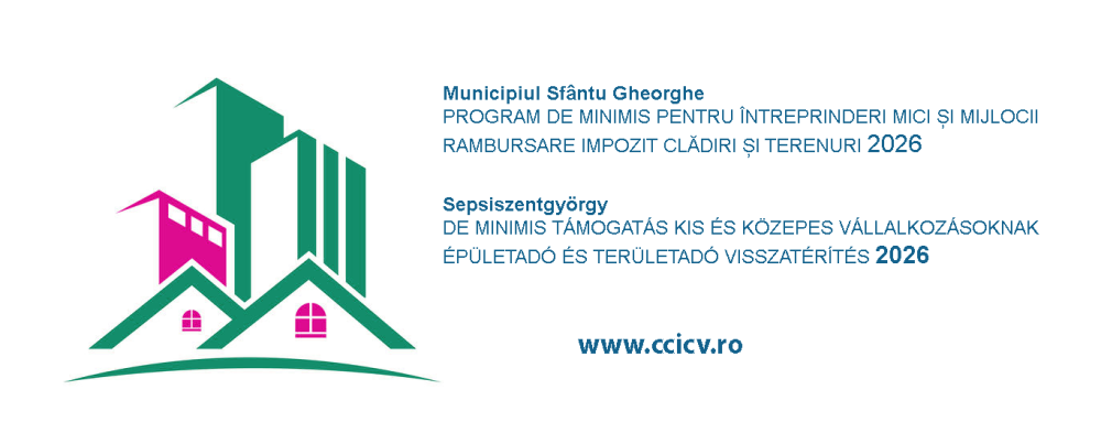 Camera de Comerț și Industrie Covasna, în parteneriat cu Primăria Municipiului Sfântu Gheorghe, au elaborat, și pentru anul 2026, ajutorul de minimis, destinat IMM-urilor cu sediul în municipiul Sfântu Gheorghe. Ajutorul vizează rambursarea unei părți din impozitul plătit, aferent anului 2026, pe clădirile aflate pe raza municipiului, precum și pentru terenurile intravilane înregistrate ăn registrul agricol la categoria de folosință terenuri de construcții, deținute de IMM-urile care își au sediul/punct de lucru în municipiul Sfântu Gheorghe (inclusiv cele înființate în baza Legii 1/2005 privind organizarea și funcționarea cooperației). Rambursarea impozitului pe clădiri se va realiza sub formă de ajutor de minimis acordat de Primăria Sfântu Gheorghe pe baza unor proiecte depuse de solicitanții eligibili. Administratorul schemei de ajutor de minimis este Camera de Comerț și Industrie Covasna.